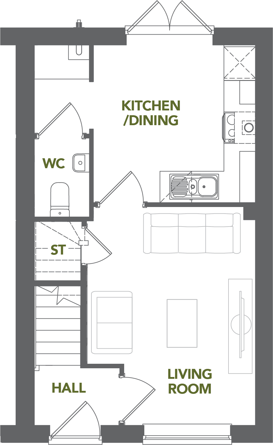The ground floor opens with a welcoming living room thatleads through to a light and spacious kitchen and dining area — complete with French doors opening out to the rear garden. A convenient cloakroom and handystorage space add everyday practicality.