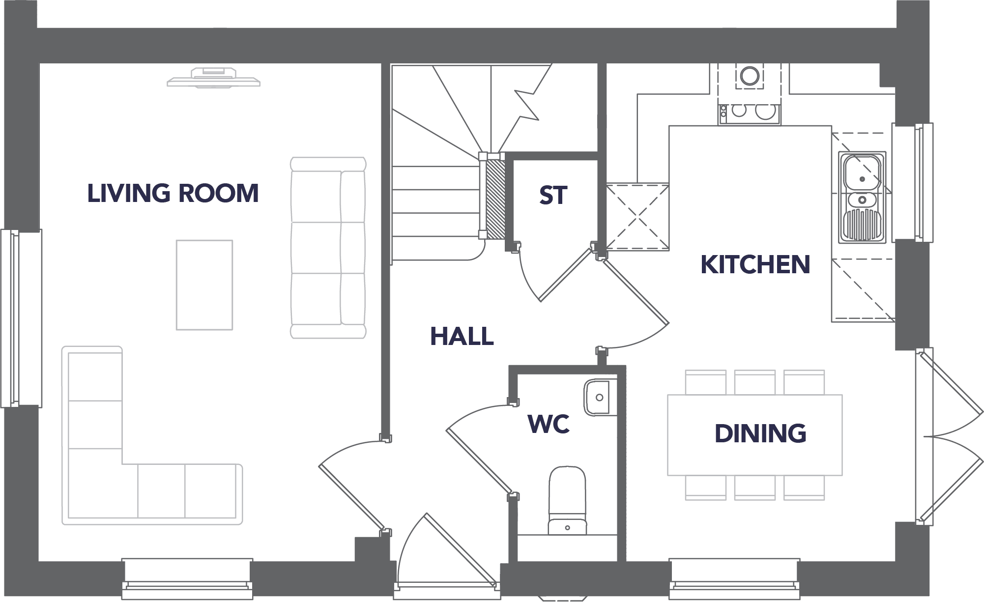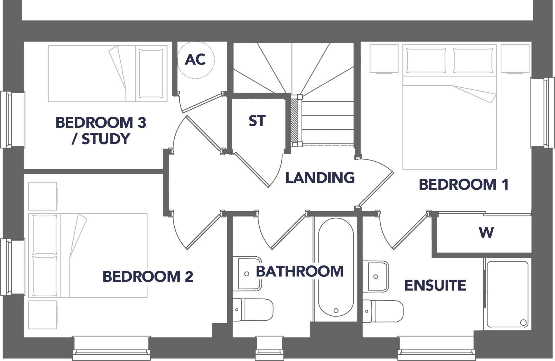 Upstairs, the principal bedroom includes a fitted wardrobeand en suite, while two further bedrooms and a family bathroom provide flexible space for rest, work, or relaxation. With its thoughtful layout and high-quality finish, The Lawton offers a considered approach to modern living.