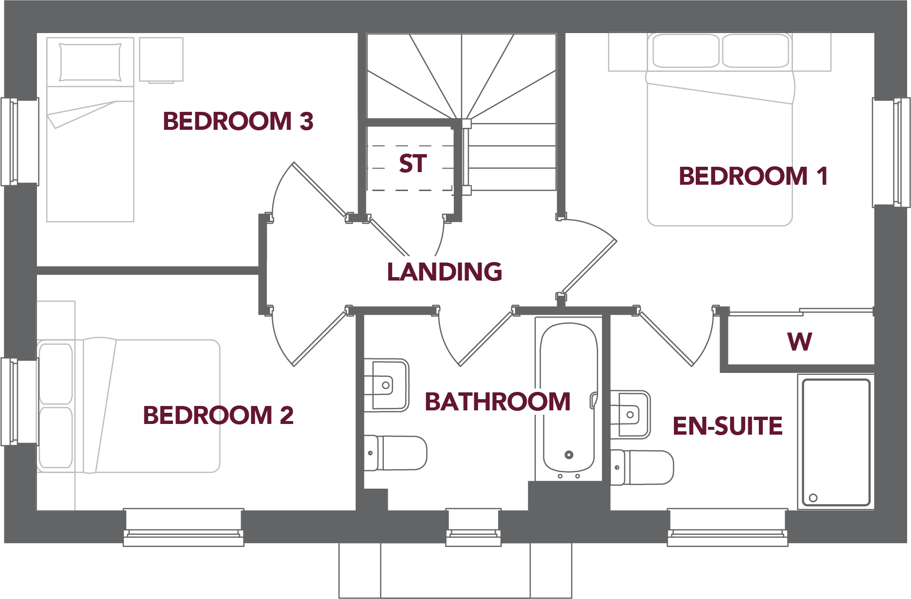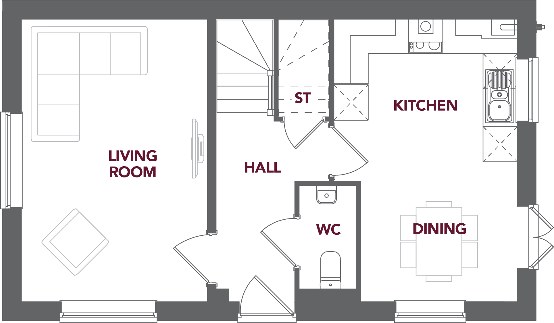 The Hawthorn is a detached home with an impressive central hall that leads off to the large living room on one side and the open-plan kitchen/dining on the other. There are three double bedrooms on the first floor and plot 1 also benefits from a detached garage at the rear of the property.