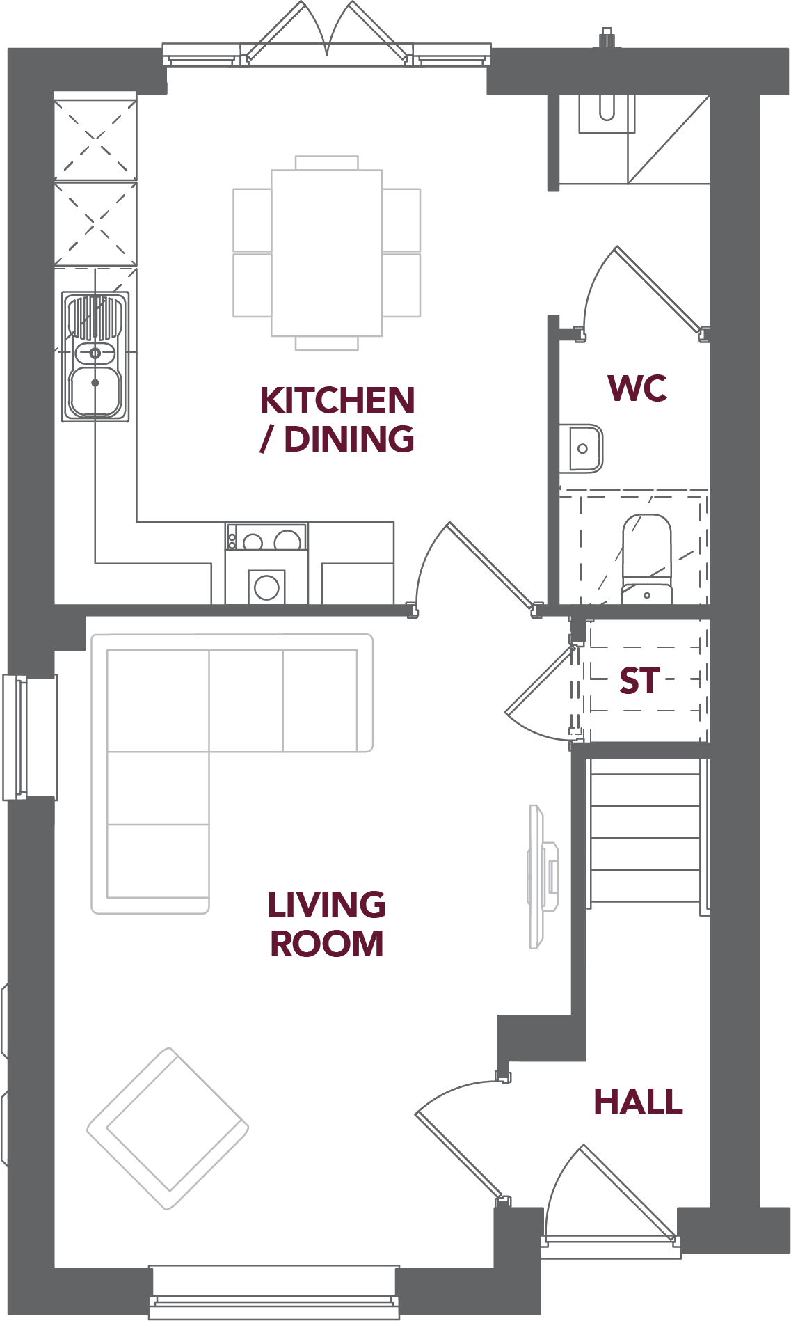 The Plum is a thoughtfully designed semi-detached home offering a well balanced layout. The ground floor features a generous living room to the front of the property, complemented by a spacious kitchen and dining area with doors leading to the garden. Upstairs, there are two double bedrooms and a third bedroom that also offers the flexibility to be used as a study or home office. The main bedroom includes an en suite and fitted wardrobes, providing a comfortable and well appointed space.